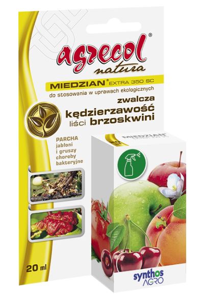 Agrecol Miedzian Extra 350 SC jest to preparat grzybobójczy, koncentrat stężonej zawiesiny do rozcieńczania wodą. Miedzian Extra działa powierzchniowo, używa się go profilaktycznie w hobbystycznych uprawach drzew owocowych niskopiennych i warzyw.
