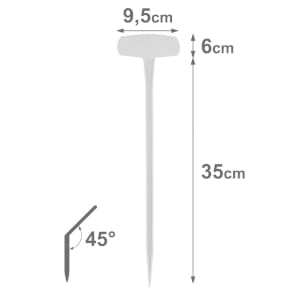 Tabliczka z większą powierzchnią do pisania, umieszczona pod kątem 45° dla lepszej czytelności. Idealna do oznaczania roślin na grządkach i rabatach.
