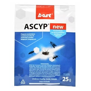 Ascyp New eliminuje różnorodne owady, w tym karaluchy, pluskwy, pchły, muchy, komary i mole. Substancja czynna – cypermetryna – działa zarówno kontaktowo, jak i żołądkowo, co pozwala na szybkie i trwałe zwalczenie insektów.