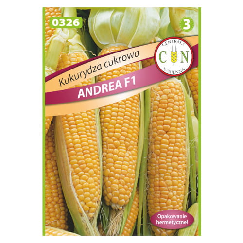 Kukurydza cukrowa 'Andrea' to odmiana wczesna, charakteryzująca się wyjątkowo słodkim smakiem. Jest to mieszańcowa odmiana, która wyróżnia się wysokim plonowaniem. Kolby są duże, osiągając długość 15-20 cm, i są całkowicie wypełnione złotożółtym ziarnem.