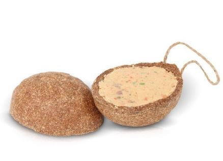 Pełnoporcjowa mieszanka tłuszczowo-orzechowa dla ptaków. Przysmak zatopiony jest w łupinie kokosa, do której przymocowany jest sznurek, umożliwiający zawieszenie produktu w dogodnym miejscu. Znakomity przysmak dla ptaków.