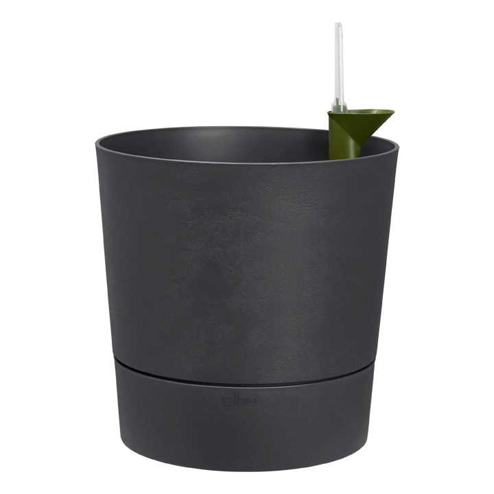 Greensense Aqua Care to wyjątkowa doniczka marki ELHO, która dzięki dodanej wtyczce, może być używana zarówno w pomieszczeniach jak i na zewnątrz. Doniczka jest okrągła i duża, a do tego bardzo pojemna. Wykonana jest wysokiej jakości recyklingowego plastiku, którego faktura przypomina beton. Dzięki użytemu materiałowi, doniczka jest lekka, mrozoodporna, wytrzymała i trwała w kolorze. Z wyglądu przypomina duże ceramiczne doniczki.