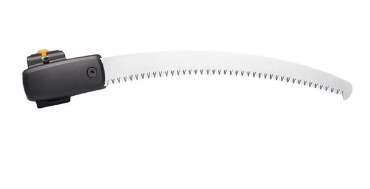 Fiskars Piła do gałęzi sekatora Żyrafa może ciąć gałęzie o ø80 mm. Piła ma specjalnie hartowane ostrze ze stali, dodatkowo jest ono wyprofilowane by cięcie było jeszcze łatwiejsze. Piła ta ma regulowany kąt cięcia.