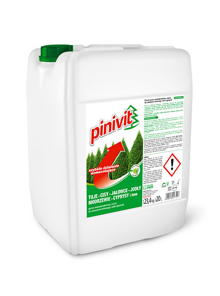 Florovit Pinivit płynny do iglaków 20 l to płynny nawóz w formie koncentratu przeznaczony do nawożenia iglaków. Do stosowania za pomocą aparatury ochrony roślin takiej jak np. opryskiwacze ręczne. Nawóz zawiera potrzebne makro i mikroelementy. Zapewnia odpowiednie odżywienie roślin i zmniejsza podatność na stresy.
