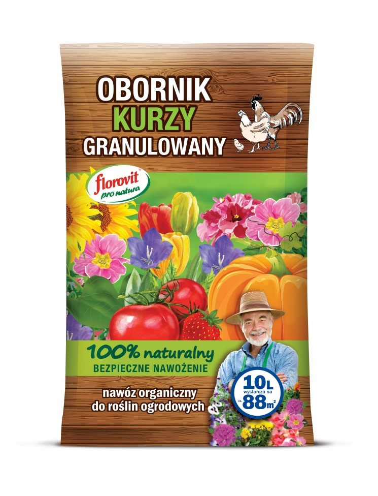 Obornik granulowany kurzy Florovit Pro Natura to naturalny, ekologiczny nawóz organiczny stworzony z wyselekcjonowanych, przefermentowanych odchodów drobiu oraz wysokiej jakości ściółki. Ten wyjątkowy obornik kurzy granulowany został opracowany z myślą o wymagających ogrodnikach, którzy poszukują skutecznego i bezpiecznego rozwiązania do pielęgnacji roślin owocowych, warzywnych oraz ozdobnych.