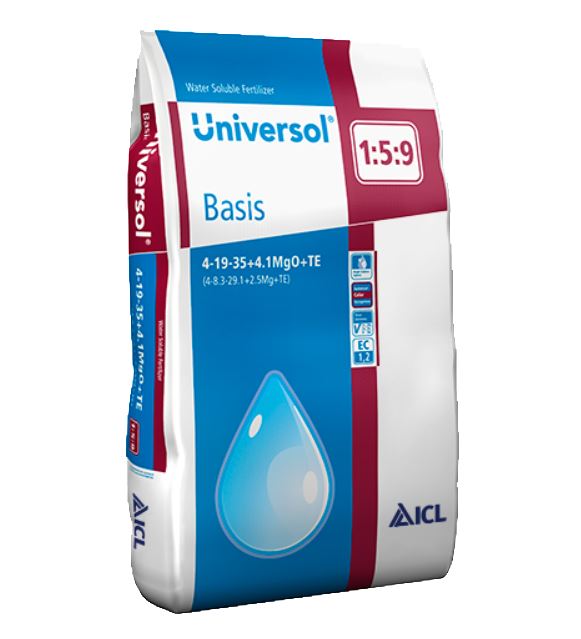 Nawóz ICL Universol Basis został przygotowany z myślą o stosowaniu do systemów dozowania w różnych zbiornikach typu A+B+kwas, wraz z saletrą wapniową. Produkt jest łatwy oraz bezpieczny w użyciu, jednocześnie zawiera kompletny zestaw składników pokarmowych. Po zastosowaniu rezultaty są szybkie i zauważalne.