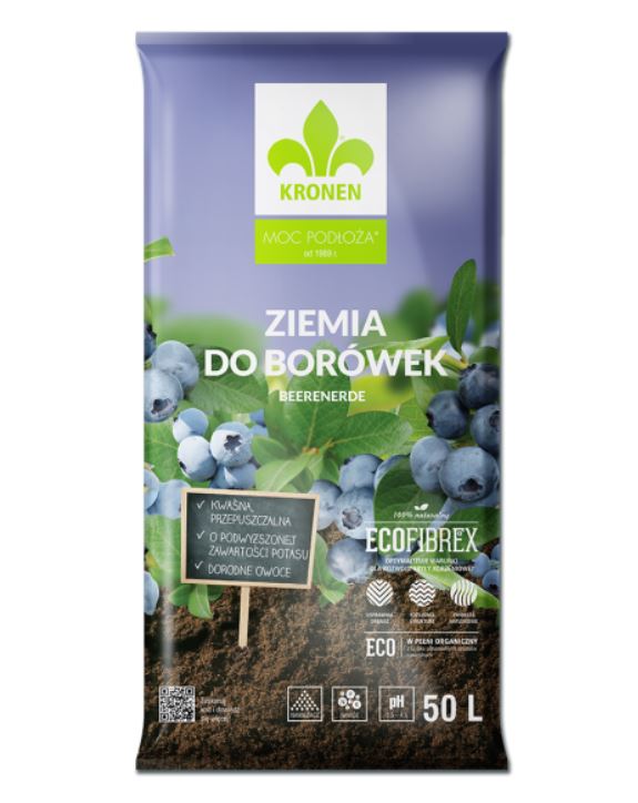 KRONEN Ziemia do borówki jest podłożem które zostało specjalnie skomponowane do sadzenia oraz przesadzania wszystkich odmian borówki.