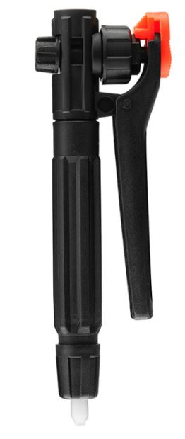 KWAZAR Rączka z zaworem tłoczkowym serii Garden Pro to rękojeść z blokadą przycisku, która ma za zadanie pracę bez trzymania przycisku, co pomaga w pracy. W rączce znajduje się filtr, który przeciwdziała przedostawaniu się zabrudzeń do dyszy.