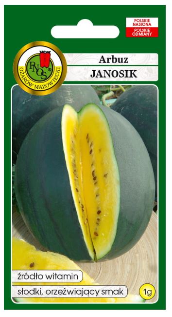 Janosik to odmiana średnio wczesna, wyróżniająca się tolerancją na chłodniejsze warunki. Owoce mają eliptyczno-okrągły kształt i osiągają masę 3,5–5,5 kg. Skórka jest cienka, w kolorze ciemnozielonym, z wąskimi, ciemniejszymi smugami oraz delikatnie zaznaczonym marmurkiem. Miąższ ma żółtą barwę, jest bardzo soczysty, słodki, zwarty i zawiera niewielką ilość nasion.