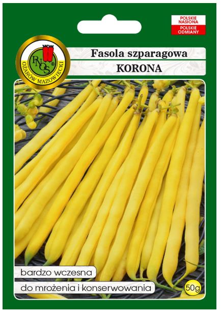PNOS Fasola szparagowa Korona żółta to odmiana bardzo plenna, która nie reaguje zmniejszeniem plonu, gdy jest wysiana później (do połowy lipca).