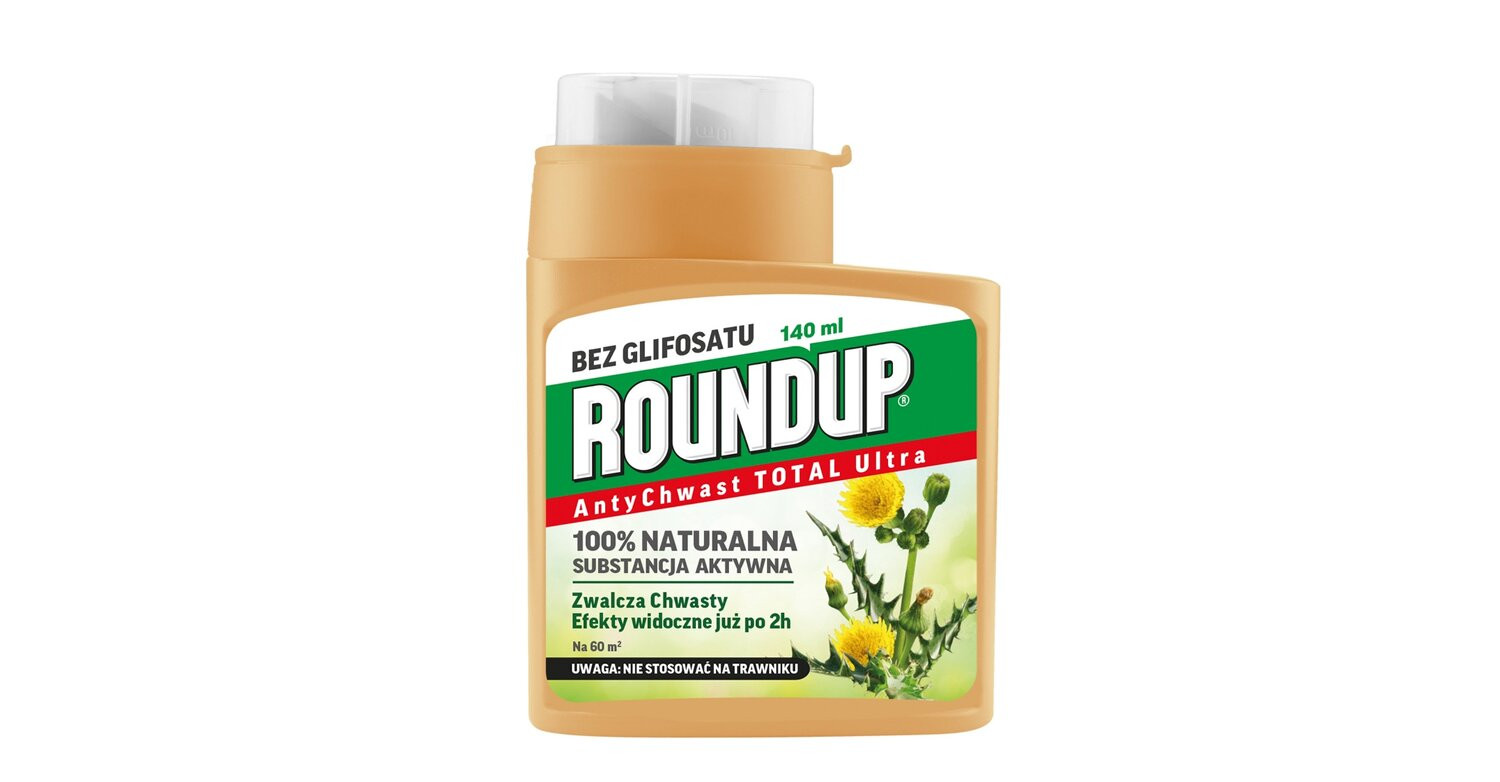 Roundup Antychwast Total Ultra to w 100% naturalny środek chwastobójczy, pozbawiony glifosatu. Skutecznie niszczy zielone, nadziemne części roślin, które mają kontakt z produktem. Chwasty zostają wyeliminowane w ciągu 24 godzin, a pierwsze efekty są widoczne już po 2 godzinach. Środek zawiera naturalną substancję aktywną, kwas pelargonowy, który ulega biodegradacji w glebie.