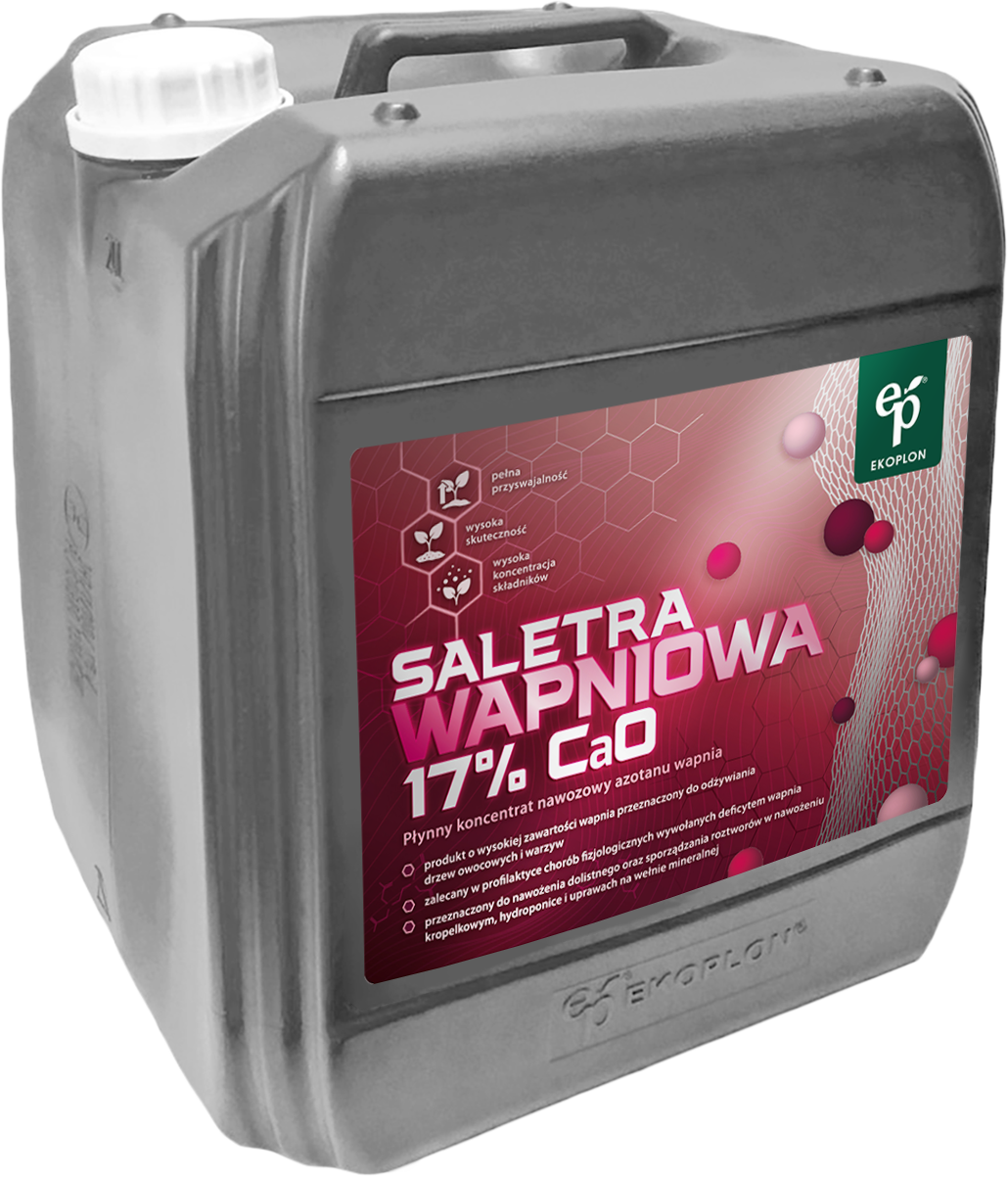 Saletra wapniowa firmy EKOPLON to wysokiej jakości nawóz wapniowo-azotowy stosowany najczęściej w przypadku niedoborów wapnia w roślinie. Dzięki formie płynnej jest wygodny do dawkowania i stosowania, można stosować go jako dodatek do pożywek lub oprysk dolistny.
