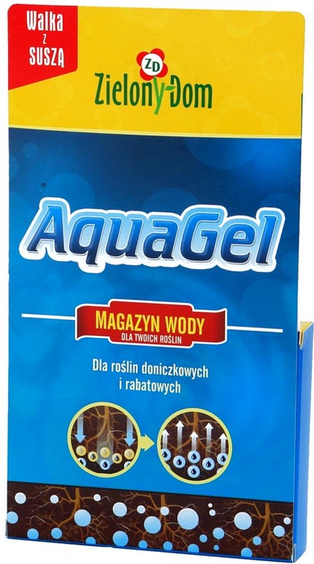 ZIELONY DOM AquaGel 60g to hydrożel, którego 1 gram wchłania nawet do 250 gramów wody. Granulat pobiera wodę, która pochodzi z podlewania, deszczu, mgły i rosy. Woda ta jest później przekazywana roślinie, gdy ta jej potrzebuje.
