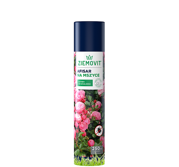 Preparat na mszyce Afisar marki ZIEMOVIT to insektycyd w postaci aerozolu charakteryzujący się działaniem kontaktowym i żołądkowym. Afisar to środek dedykowany do zwalczania mszyc w amatorskich uprawach pelargonii i róż w przydomowych ogrodach, na działkach i balkonach. Na rośliny wykazuje działanie wgłębne.
